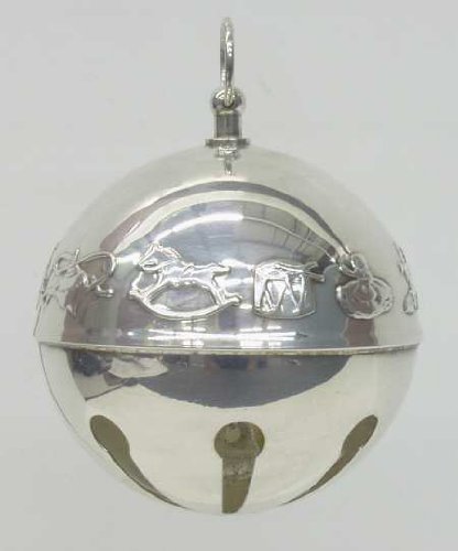 This very collectible bell ornament is 2.5" in diameter.Wallace 1974 Festive Toys silverplate bell