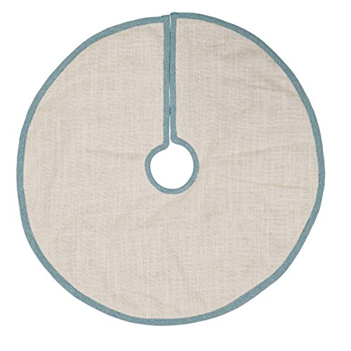 Invite the illusion of relaxing waves under the tree this year with the Sanbourne Mini Tree Skirt. The shiny rope trim is adorned as a wave inspired pattern over a textured creme and black jacquard cotton. The opening and outside edge is trimmed with .5 inch turquoise chambray and reverses to solid creme cotton slub.Material: 100% Cotton Colors: Creme, Caviar, Turquoise Manufacturer Country: India Care: Hand Wash, Lay Flat to Dry, Iron safe